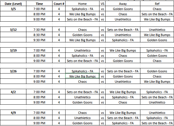 2026 Thursday Sand 6’s Season Schedule