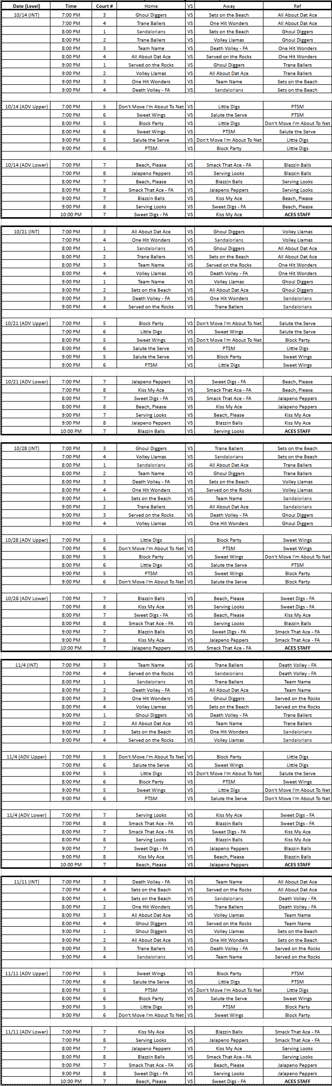 2025 Tuesday Sand 4’s Fall Season Schedule