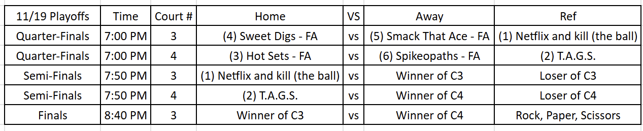 2025 Wednesday Sand 4’s Playoffs Schedule