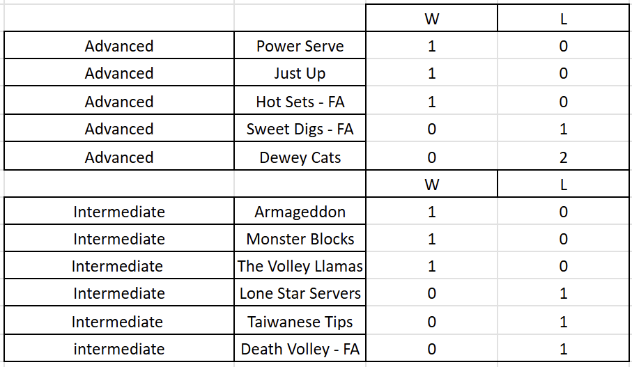 ACES Rule Change – Jerseys: We will be requiring players to wear ACES jerseys for Week 1 and Playoffs (subs/players who did not get their jerseys Week 1 is an exception). Other league jerseys worn through the season will add a 5 point penalty to your 1st Set score.