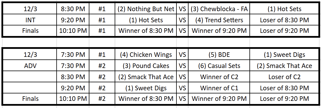 2025 Wednesday Indoor 6’s Fall Playoff Schedule